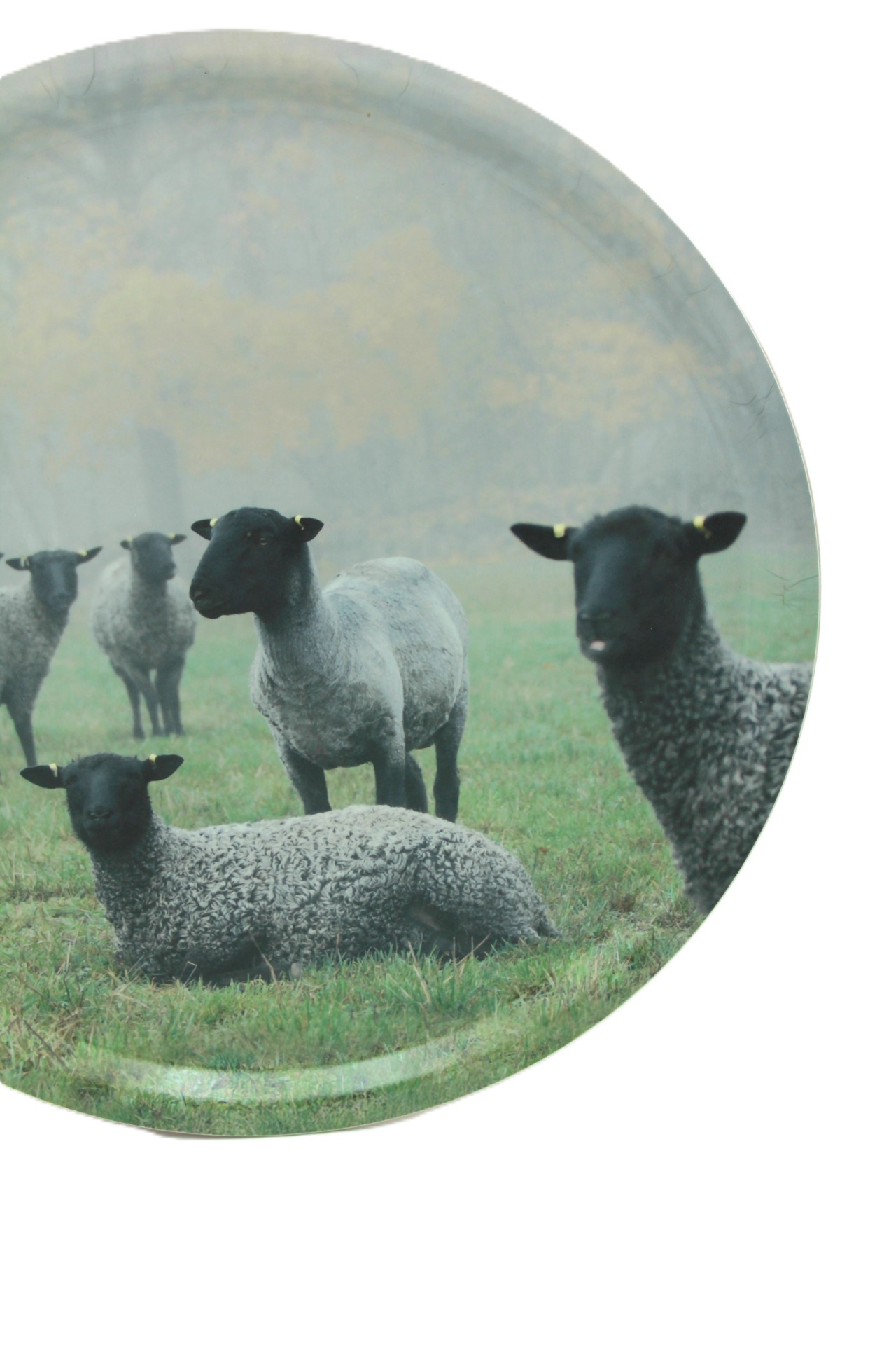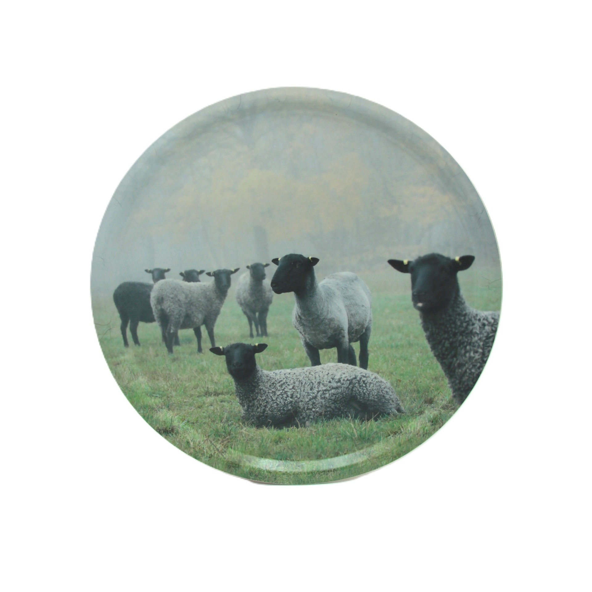 Bricka med vacker motiv på gårdens egna lamm.